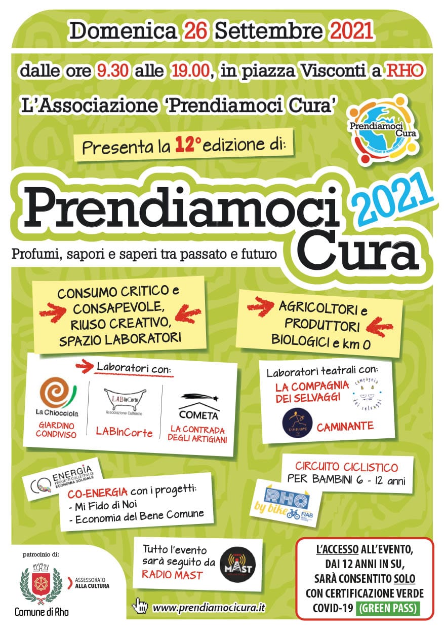 Dopo il mancato evento del 2020, finalmente possiamo annunciare ed invitarvi alla dodicesima edizione del classico appuntamento di settembre “in piazza” a Rho di “Prendiamoci Cura“.
