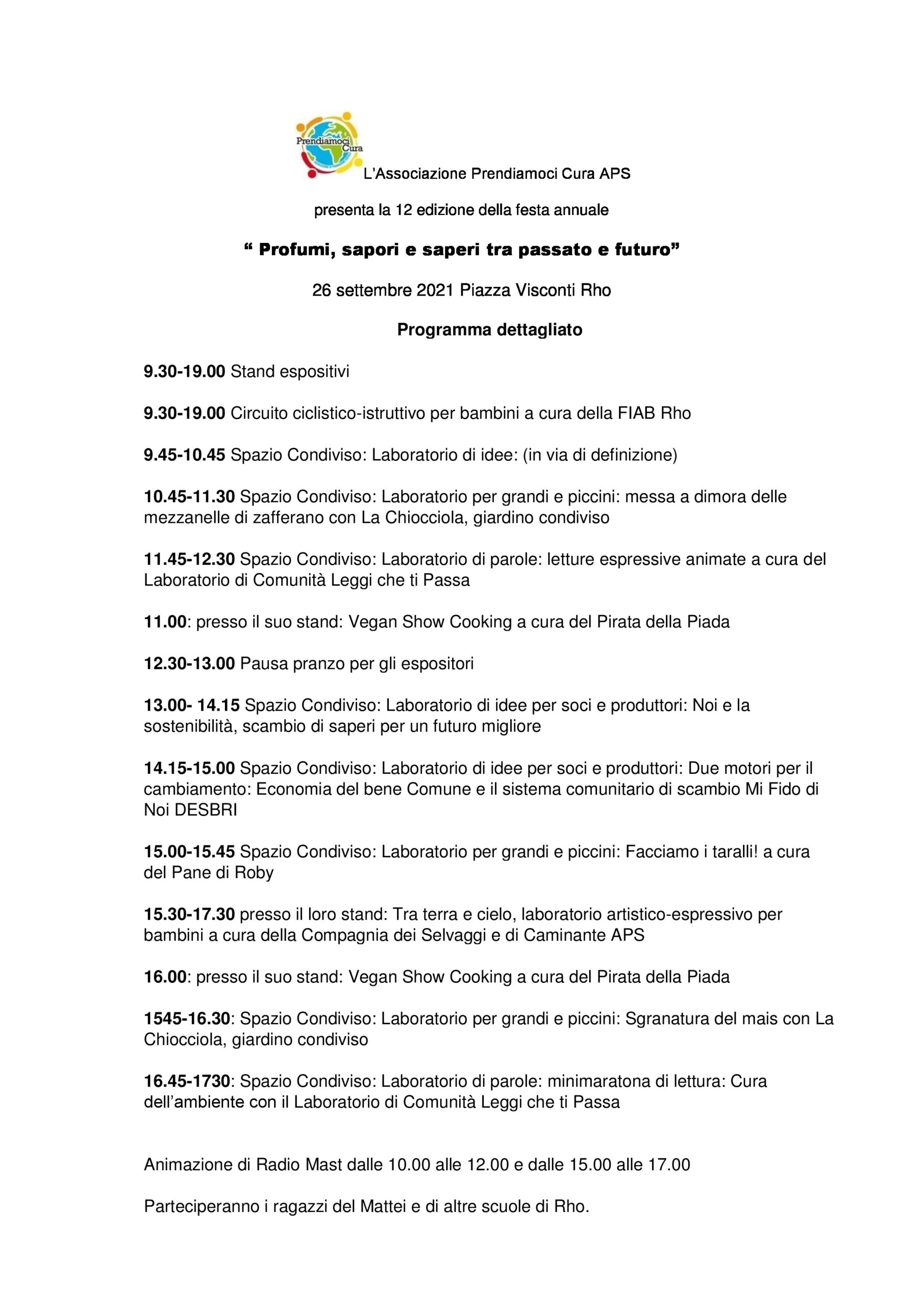 L’evento del 26 settembre è ormai imminente, la giornata in Piazza Visconti a Rho sul tema “Profumi, sapori e saperi tra passato futuro” si preannuncia ricca di appuntamenti e di incontri.