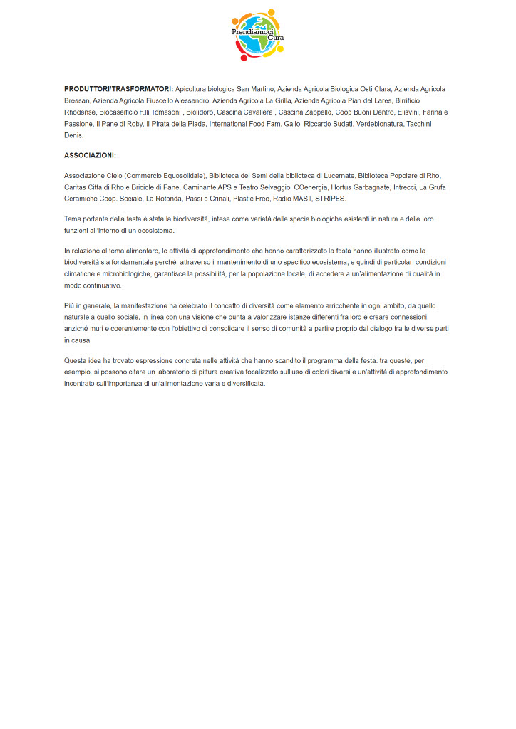 Non possiamo altro che dire un grande “GRAZIE” per tutti quelli che hanno partecipato, a vario titolo: i soci, i volontari, le istituzioni, la cittadinanza, i produttori, le associazioni.