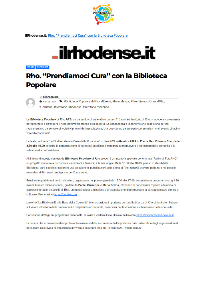 Riportiamo alcuni articoli e documenti che raccontano la giornata di settembre: appuntamento al prossimo anno!