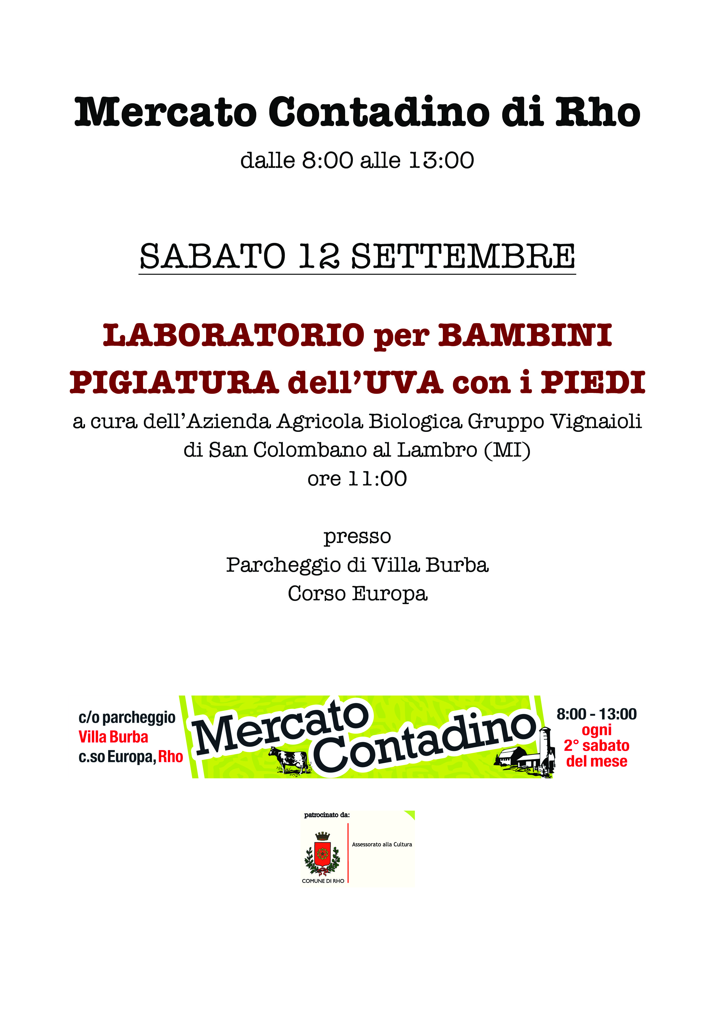 Oltre alla preziosa presenza dei produttori che collaborano con la nostra Associazione, avremo questa simpatica iniziativa promossa dal Gruppo Vignaioli di San Colombano al Lambro: sarà attivo per i bambini!