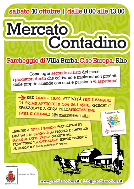 Prosegue con regolarita’ mensile il Mercato Contadino a Rho. Ospiti d’eccezione per questa edizione di ottobre: gli asini di “Passi e Crinali“, che saranno disponibili per grandi e piccini