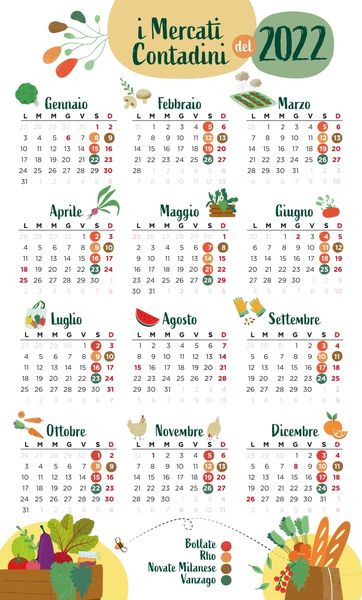 Presso i nostri produttori presenti ai Mercati Contadini, ci sarà la possibilità di ritirare gli ultimi calendari disponibili per il 2022, come pratico promemoria degli appuntamenti dell’anno e simpatico gadget. E se non riuscite a recuperarlo, lo trovate qui sotto, in versione stampabile.