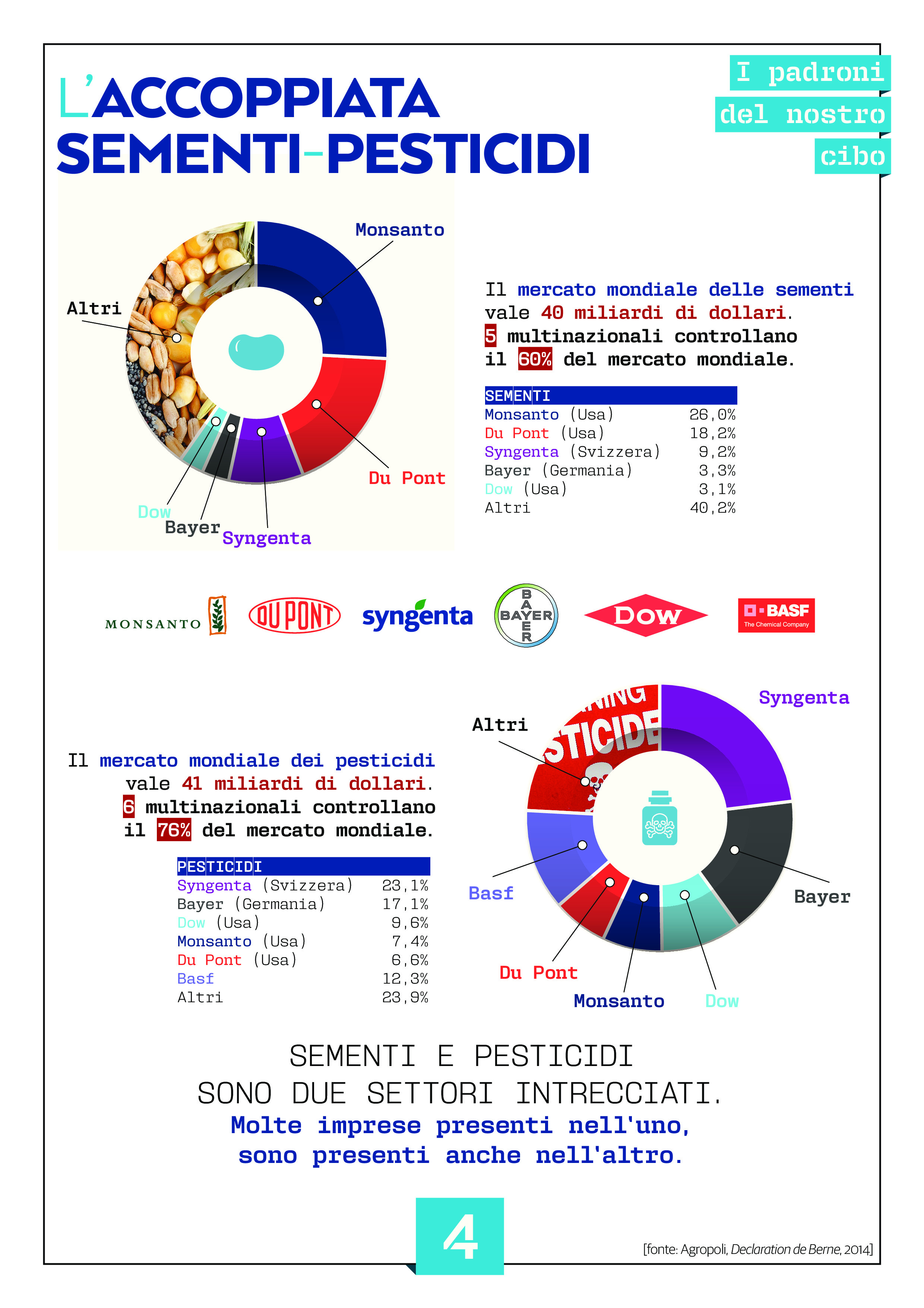 Ringraziando il Centro Nuovo Modello di Sviluppo, iniziamo a pubblicare questo documento molto chiaro e semplice, nel quale vengono illustrati tutti i protagonisti della situazione attuale riguardo agli alimenti e prodotti che acquistiamo, per capire effettivamente quali sono i reali Padroni del Cibo. Non accettare passivamente questo modello economico in essere ha dato vita alla creazione dei Gas e delle Associazioni come Prendiamoci Cura!