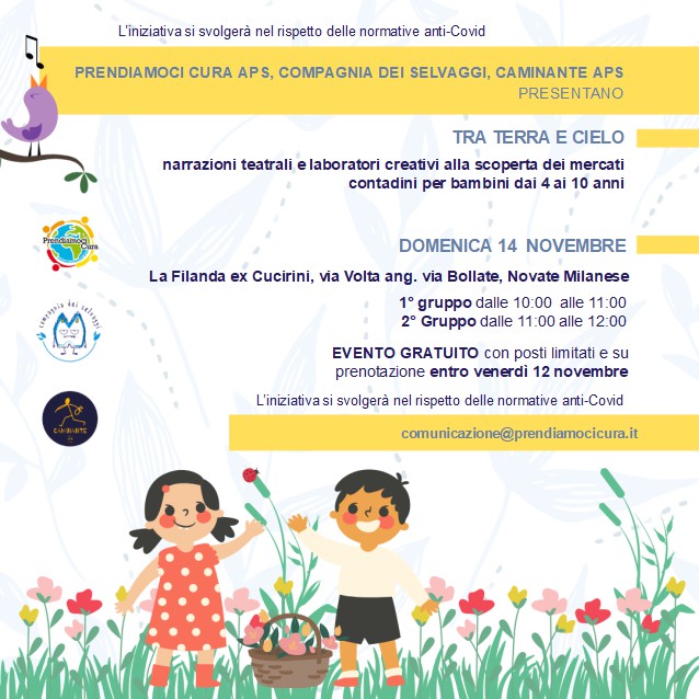 Durante la giornata di sabato 13 novembre, dalle 10 alle 11 e dalle 11 alle 12: laboratori «Tra terra e cielo: narrazioni teatrali e laboratori creativi» 🧑🤝🧑🧑🎨