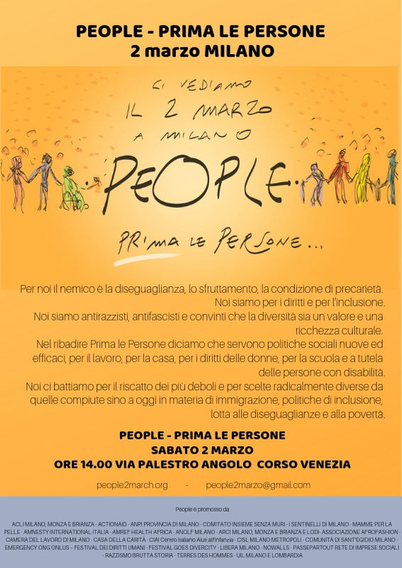 Per noi, invece, il nemico è la diseguaglianza, lo sfruttamento, la condizione di precarietà. Inclusione, pari opportunità e una democrazia reale per un Paese senza discriminazioni, senza muri, senza barriere: per questi valori promuoviamo a Milano il prossimo 2 marzo una mobilitazione nazionale.