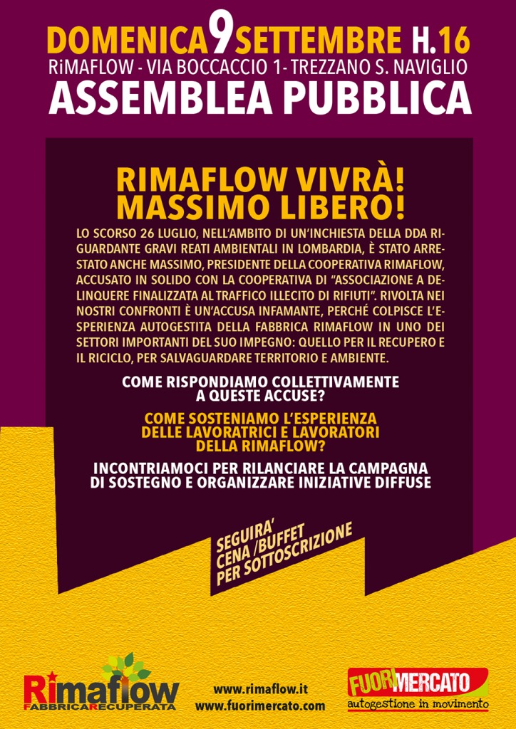 Vi invitiamo sabato 9 settembre all’assemblea pubblica presso Rimaflow, dove si portanno avere tutte le informazioni in merito e chiarimenti riguardo la vicenda in corso.