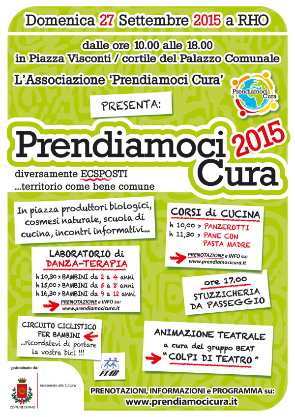 “Il tema e le sottolineature che caratterizzano l’edizione del 2015 di Prendiamoci Cura, riguardano il nostro territorio e coloro che si adoperano per difenderlo, coltivarlo per ricostruire la sua fertilità e la sua grande potenzialità e ricchezza (la pianura padana è una zona tra le più fertili d’Europa, il Parco Agricolo sud Milano è il più grande parco agricolo d’Europa). (…) Prendiamoci Cura 2015 intende stimolare una riflessione su questi temi, valorizzando le forme di produzione e di consumo che si misurano e cercano di essere in sintonia con le esigenze delle persone, che poi sono quelle di poter accedere ad un cibo sano, di avere un lavoro dignitoso e di vivere in un ambiente accogliente per tutti gli esseri viventi e non stravolto dalla volontà di trarre profitti a tutti i costi.”